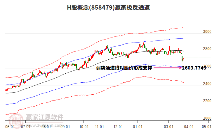 目前H股板块在周线上处于空头下跌趋势,该趋势已经持续3周,重心持续下移,下方支撑位:2681.29,第二支撑位:2596.68。长期显示也处于多头回调趋势,在极反通道上显示目前处于强势通道线上。